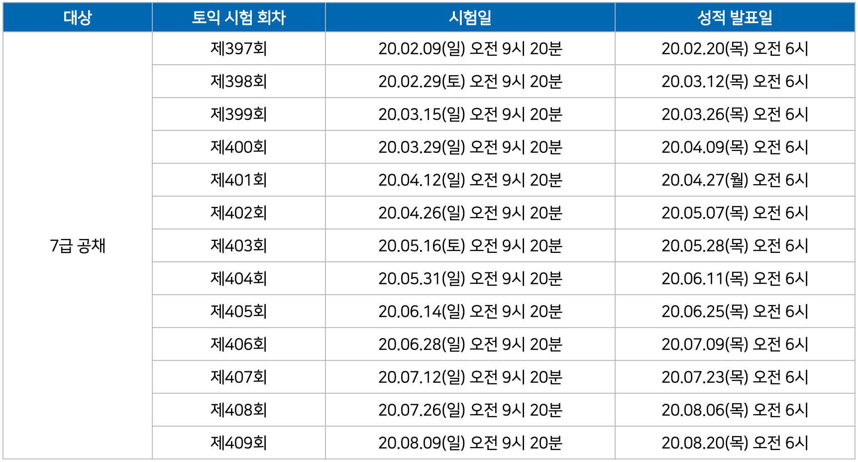 2020년 국가공무원 공채시험 접수 마감까지 가능한 토익 시험 기회를 알려드립니다. 혹시라도 영어 능력 검정시험의 기준 점수가 충족되지 못한 분들은 아래 자세한 시험 일정을 확인하세요!