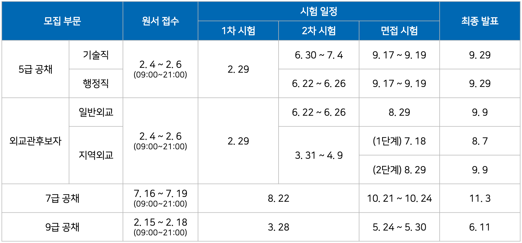 ▶ 5급 공채 / 외교관후보자 : 총 1개 회차