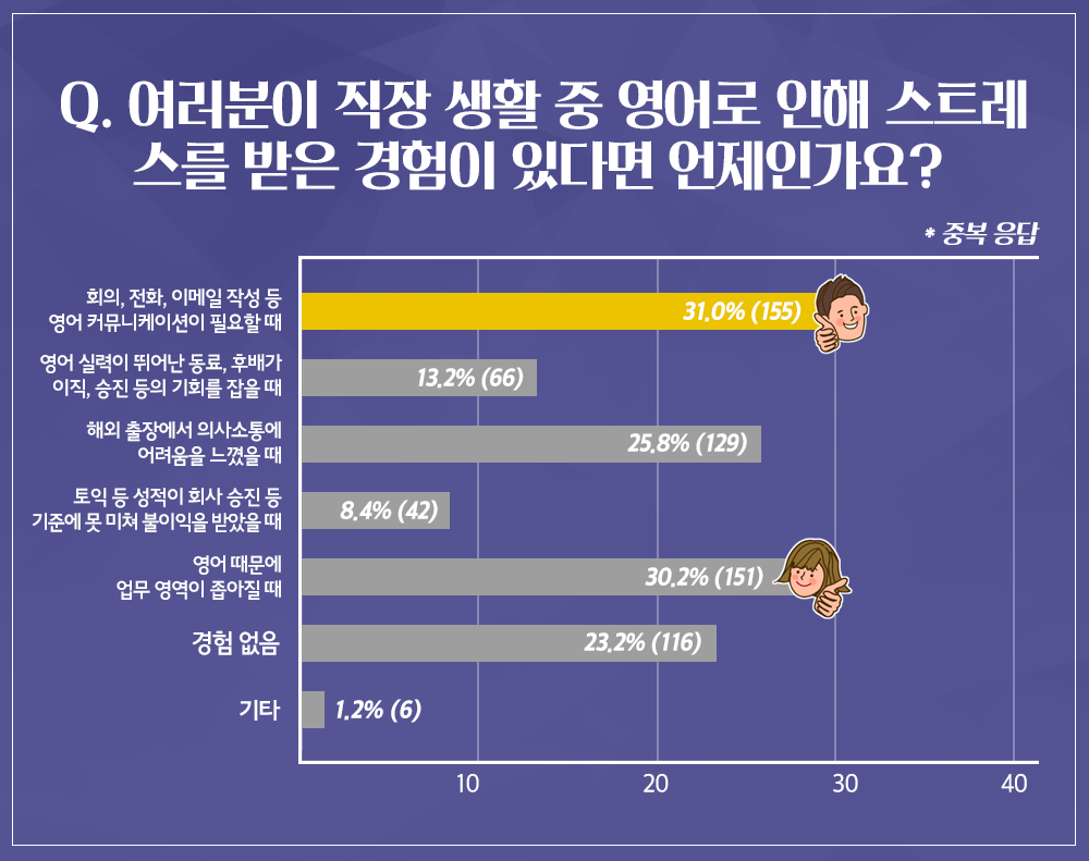 직장인이 영어 스트레스 받는 순간 1위는? '실무'에서 필요할 때