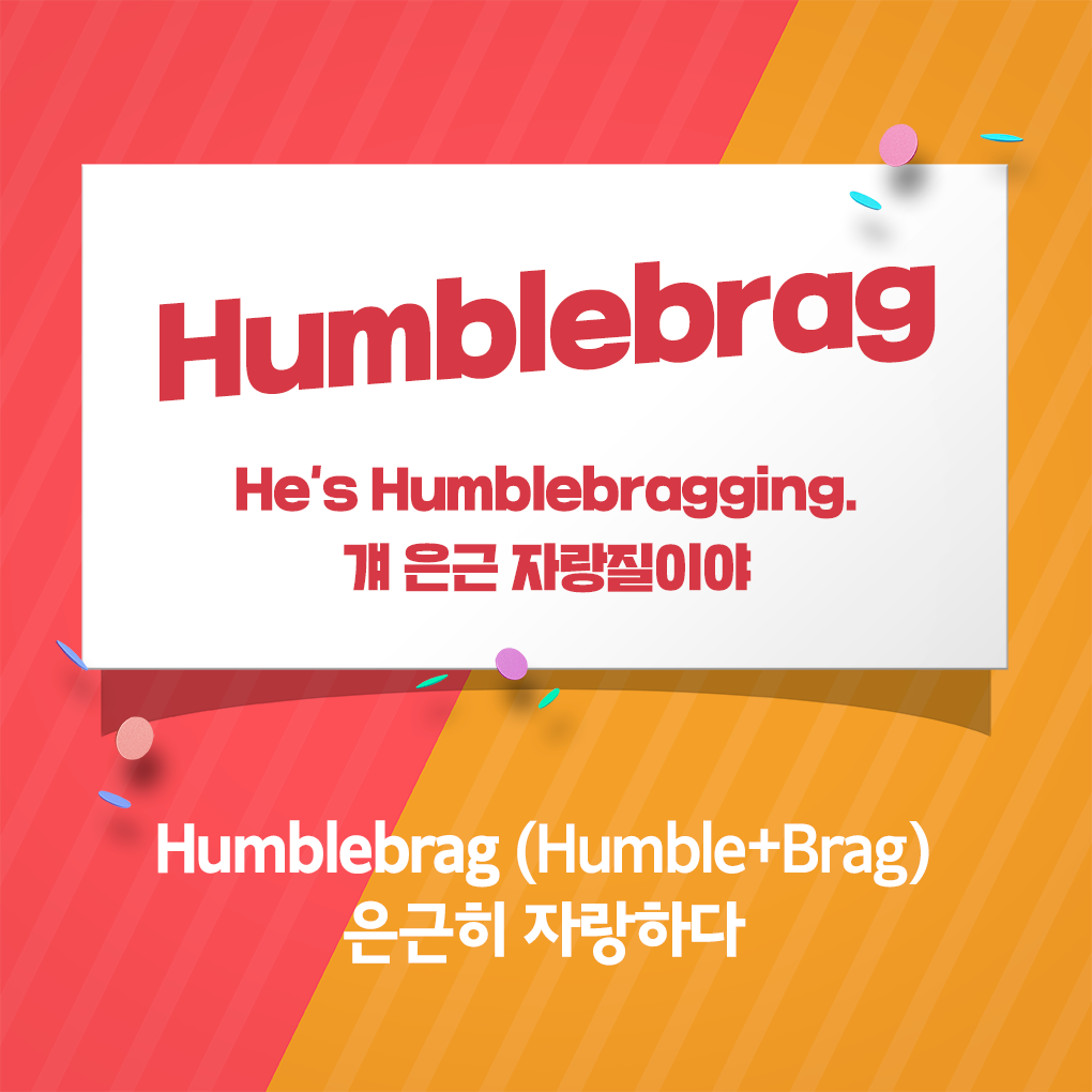 Flex가 대놓고 과시하는 모습이라면 'Humblebrag'는 '은근히 자랑'하는 모습을 말합니다. 예를 들어 토익에서 고득점을 받은 친구가 "아 이번 시험 꽤 어려웠는데 다 맞았네"라고 말한다면, 우리는 그를 'Humblebragging'한다고 말할 수 있겠죠. 트위터, 인스타그램 등 SNS에서 해시태그로 자주 활용되는 단어이기도 합니다.