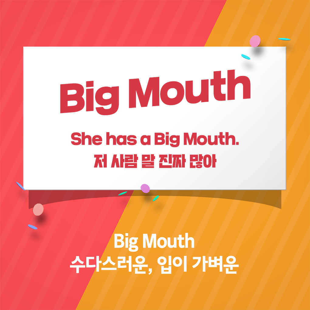 한동안 인터넷 커뮤니티에서 'TMT(Too Much Talker)'인 유명인이 화제가 되며 수많은 패러디가 양산된 적 있습니다. 말을 너무 많이 하는 사람을 일컫는 신조어 'TMT'는 영어지만 원어민에게 사용하면 정작 이해하지 못한다고 하는데요. 원어민들은 'TMT'와 같은 뜻으로 'Big Mouth'라고 표현합니다. 이는 수다스러운 사람뿐만 아니라 입이 가벼운 사람, 비밀을 누설하는 사람을 말할 때 쓰이기도 합니다.