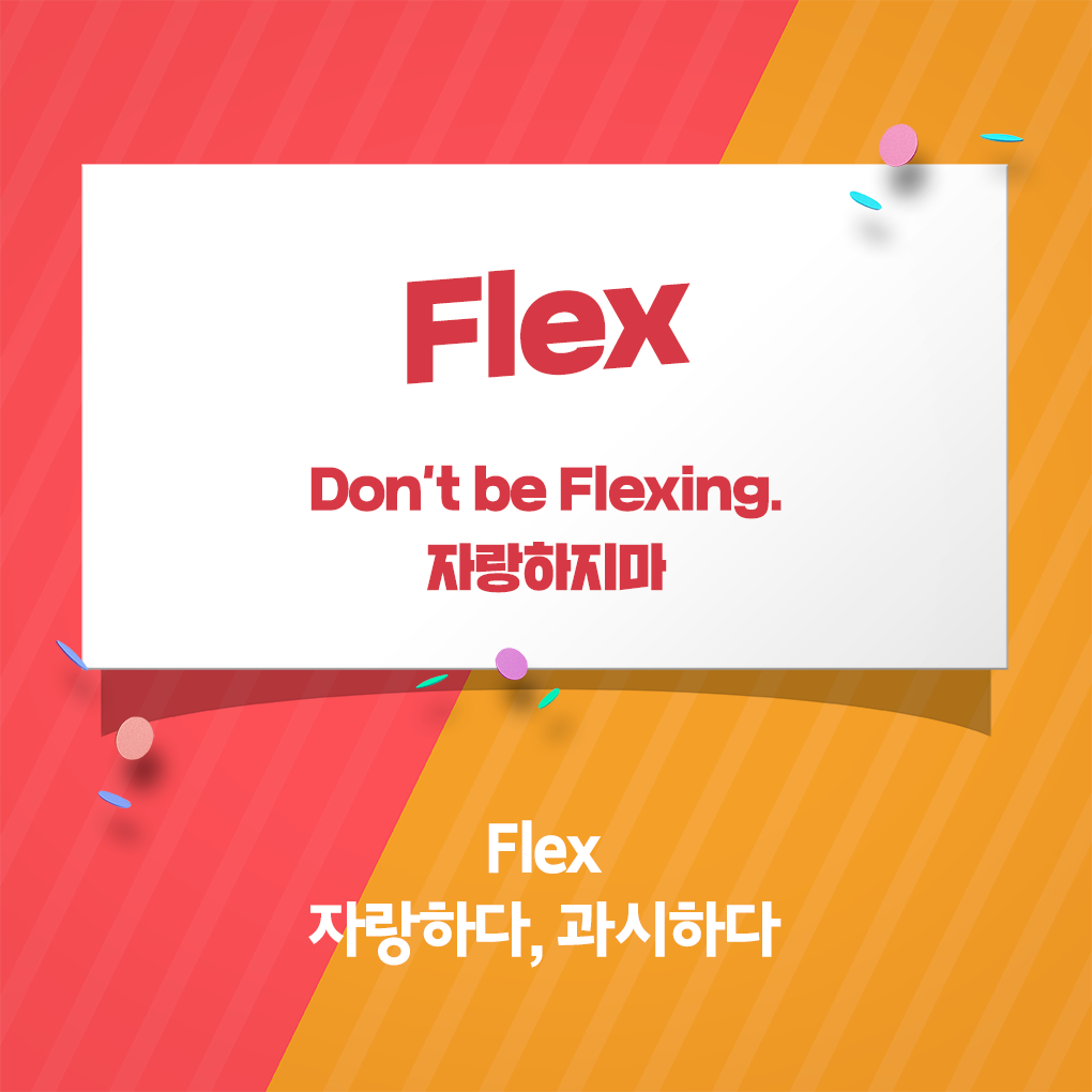 "나 어제 백화점에서 가방 하나 Flex 해버렸지 뭐야"라는 말, 들어보셨나요? 최근 우리나라에서 자주 쓰이는 신조어 'Flex'는 해외에서도 일상적으로 사용되는 신조어 중 하나인데요. 한국에서 '탕진하다', '비싼 물건을 사다'는 맥락으로 사용되는 Flex는 영미권에서 '과시하다', '자랑하다'는 뜻으로 널리 사용되고 있습니다. '근육에 힘을 주다'는 사전적 의미처럼 몸에 힘을 주고 근육을 자랑하는 모습에서 그 뜻이 유래됐다고 해요.
