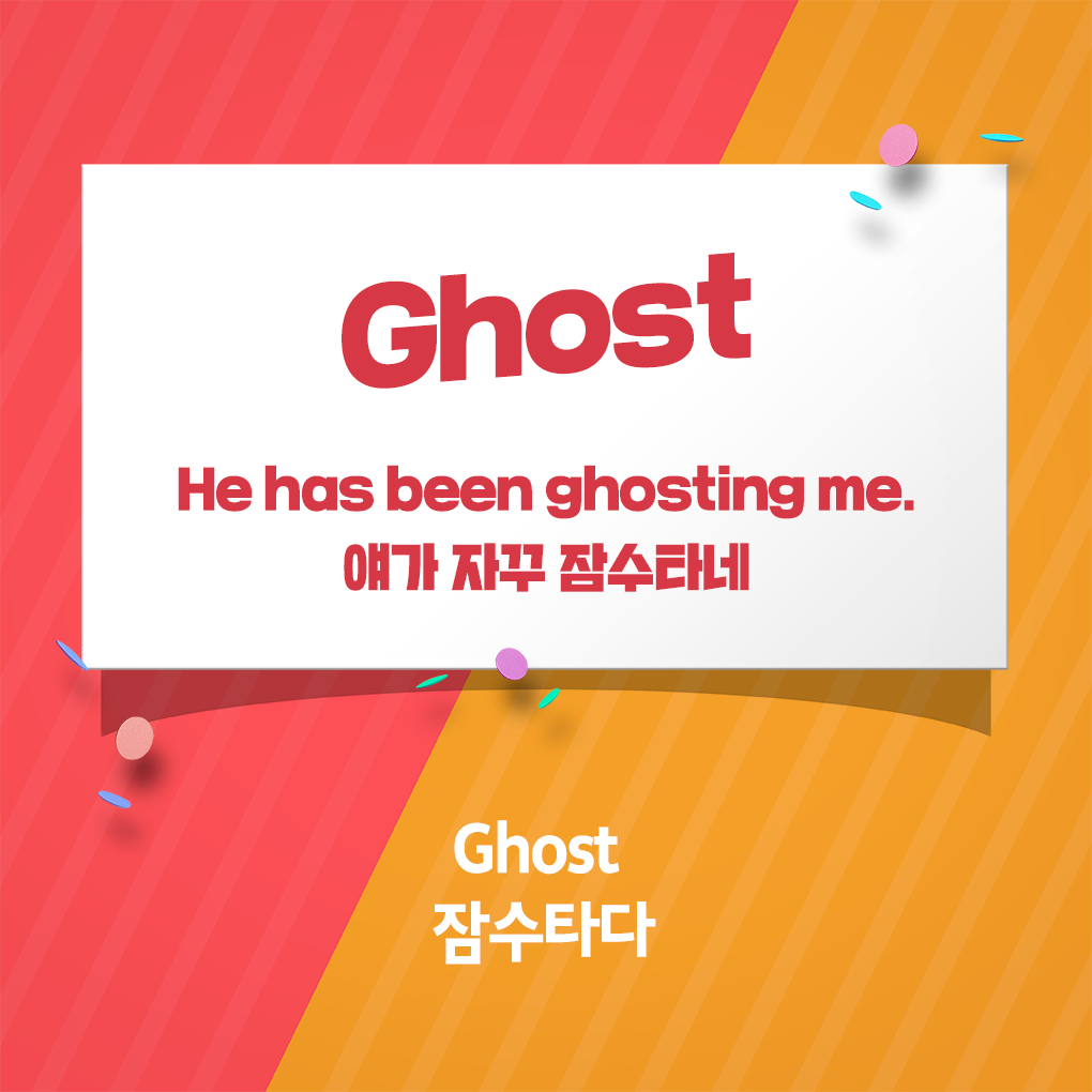 누군가와 메시지를 주고받을 때 아무리 기다려도 답장이 오지 않거나, 연락 두절되는 경우 우리는 ‘잠수탔다’라고 하죠. 영어에서는 이러한 상황을 'Ghosting'이라고 표현합니다. '유령처럼 사라져 버린다'는 의미로 자주 쓰이는 단어인데요. 누군가 내 연락을 계속 무시하는 친구가 있다면 "Don’t Ghosting me!"이라고 외칠 수 있겠죠?