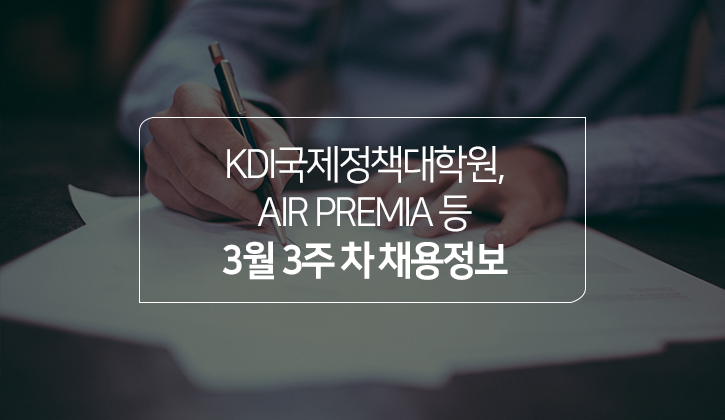 <토익스토리>가 전하는 위클리 채용정보, '3월 3주 차' 채용안내입니다. KDI국제정책대학원, AIR PREMIA, 한국국제보건의료재단에서 인턴, 신입 및 경력 사원을 모집합니다. 각 채용의 모집 마감일과 토익, 토익스피킹 성적 기준을 알아보도록 하겠습니다.