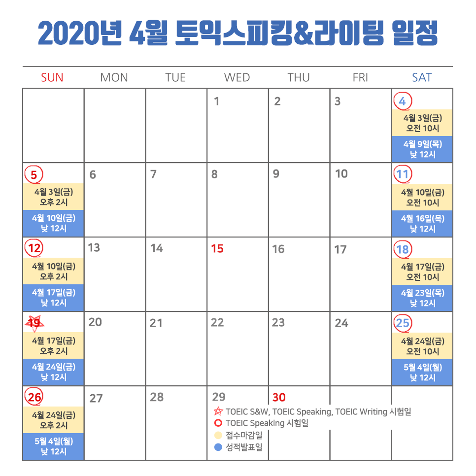 2020년 4월 토익스피킹과 토익라이팅 일정을 한 번에!