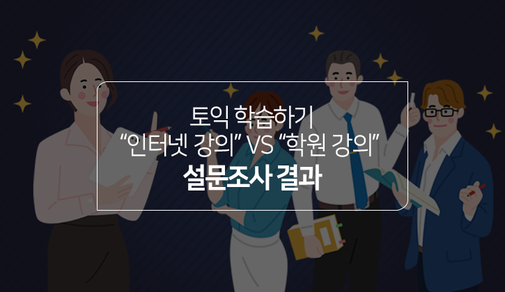 지금까지 '토익 학습, 인터넷 강의 vs 학원'라는 주제의 설문조사 결과를 전해드렸습니다. 무엇보다 자기의 성향과 시간을 활용하는데 있어서 유리한 방향으로, 자기에게 꼭 맞는 학습방법을 찾는 것이 중요할 것 같습니다. 이것저것 상황에 따라 수시로 바꾸는 것보다 꾸준하게 학습하는 것도 물론 중요하겠죠? 나에게 꼭 맞는 학습방법으로 최고의 성과를 내시길 <토익스토리>가 응원하겠습니다.