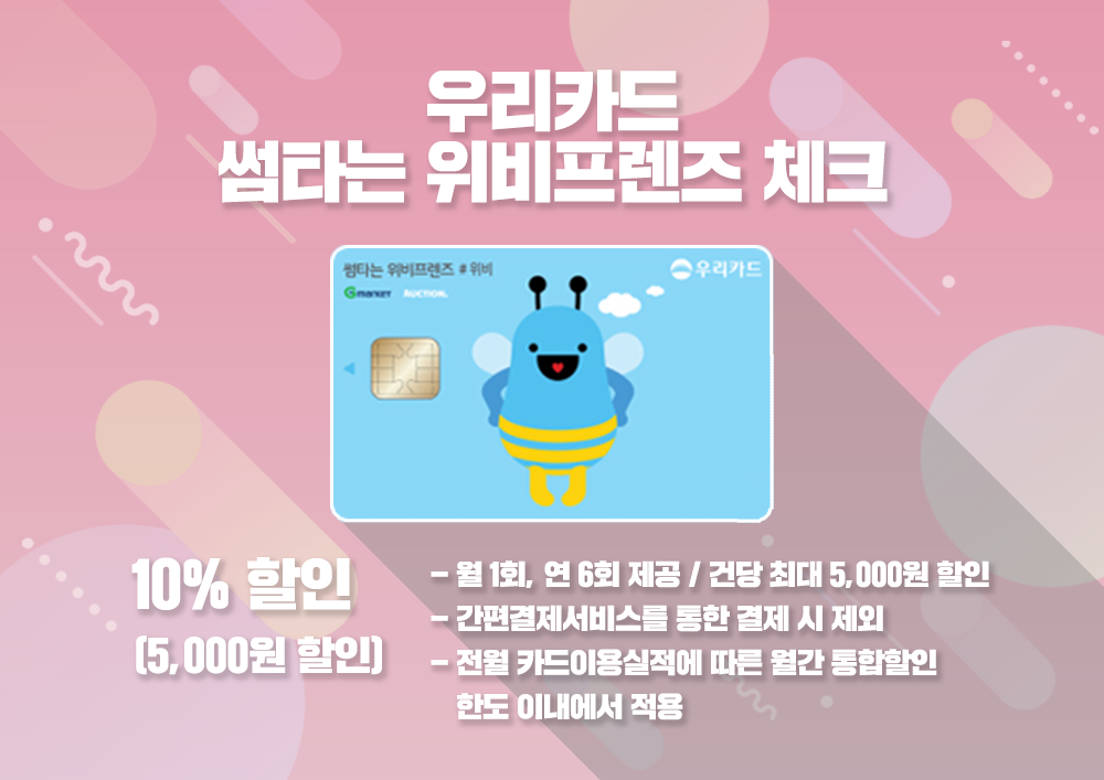 10% 할인! - 우리카드 썸타는 위비프렌즈 체크