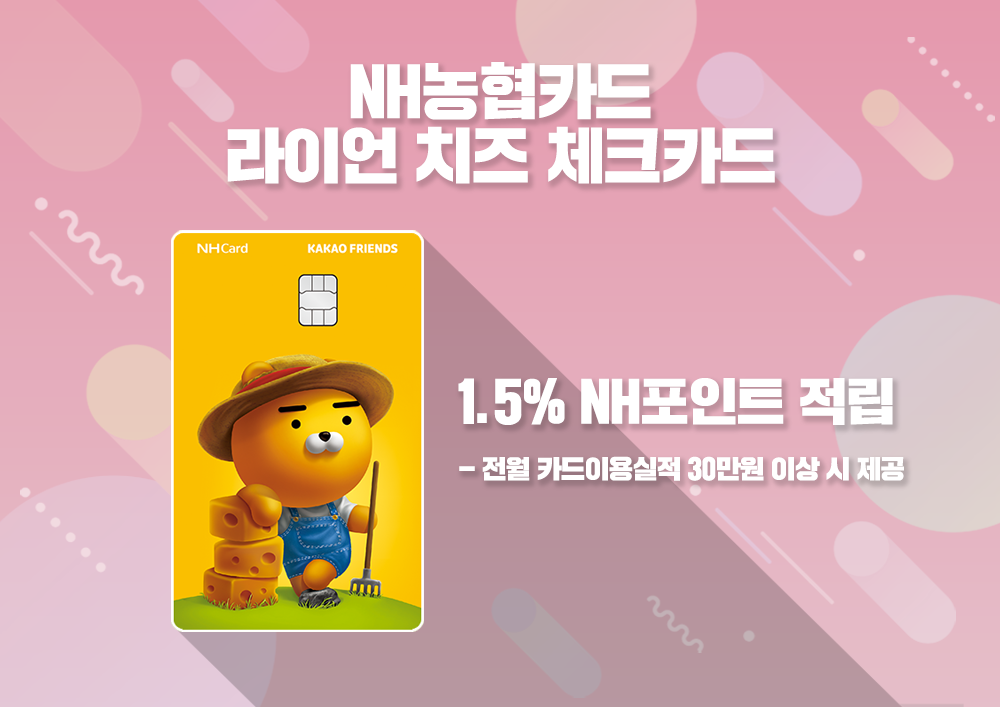 1.5% 포인트 적립! - NH농협카드 라이언 치즈 체크카드