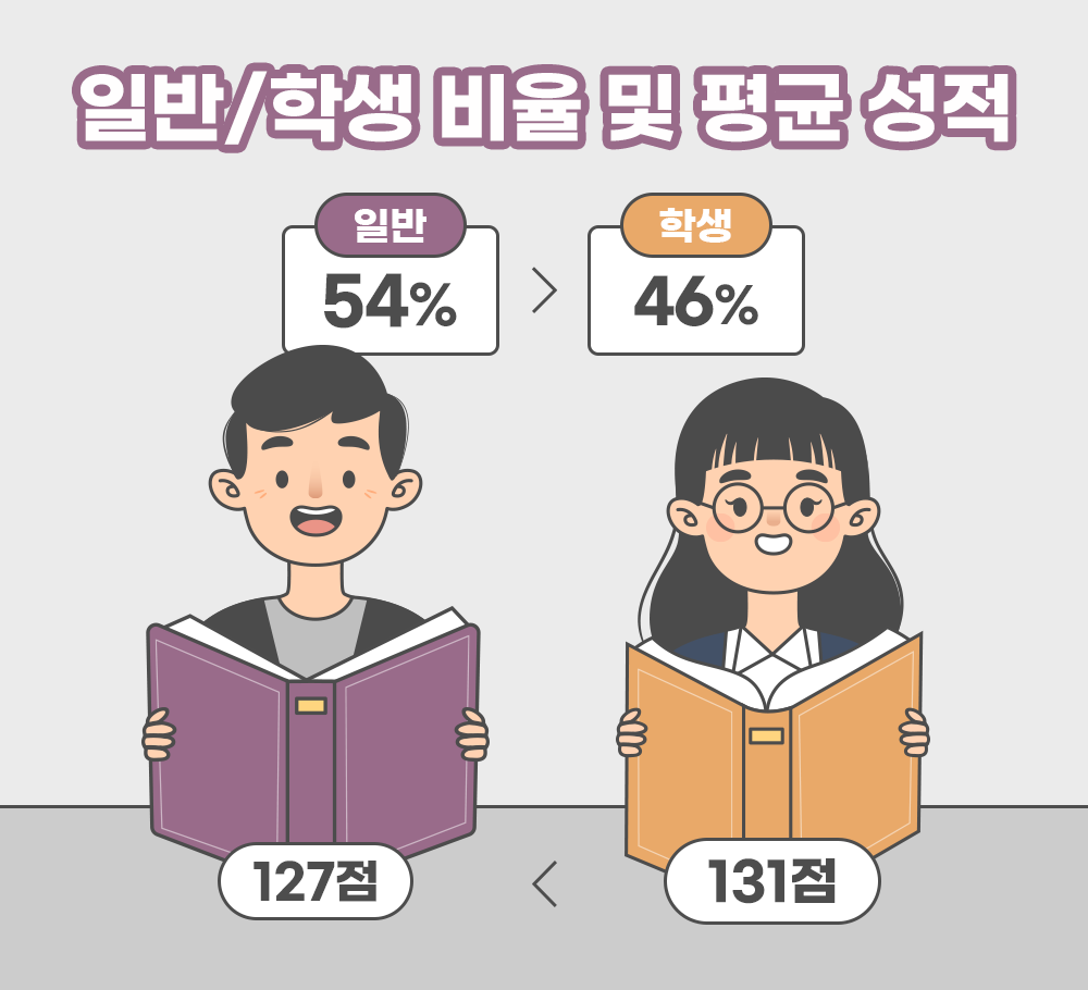 응시율은 일반인이, 성적은 학생이 높아