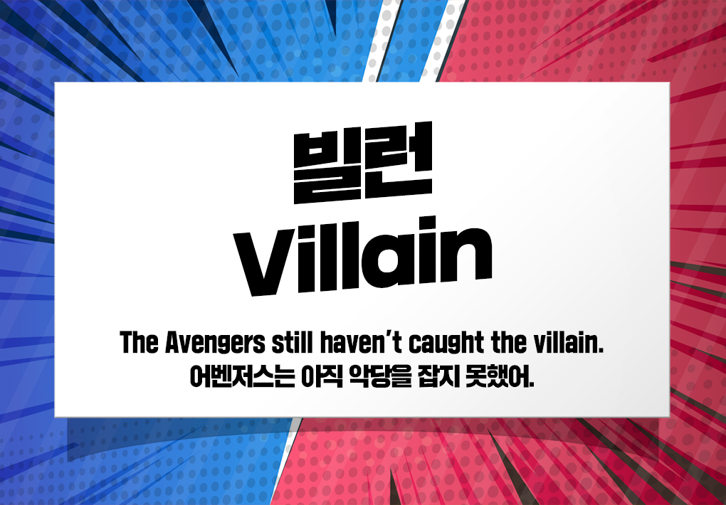 '빌런'은 주로 영화나 소설, 또는 요즘 유행하는 신조어처럼 쓰이는데, 실제 구어로 악당을 표현할 때는 'Bad guy', 'Baddy' 정도로 표현하는데요. 참고로 범죄를 저지른 사람은 해당 죄목과 관련된 단어로 표현합니다. 도둑(thief), 살인범(murderer), 사기범(swindler) 등으로 말이죠.