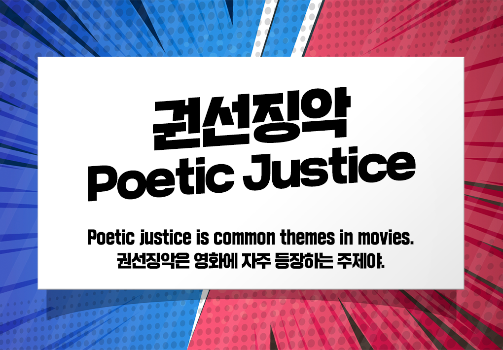 '나쁜 짓을 하게되면 벌을 받게 된다'는 만고불변의 진리! 권선징악을 뜻하는 단어는 'Poetic Justice'라고 표현합니다. '시(詩)적인'이란 뜻의 'Poetic'과 '공정, 정의'란 뜻의 'Justice'를 합친 말로 권선징악, 인과응보를 영어로 표현할 때 쓰입니다. '마땅한 받아야할 벌, 죗값을 치른다'는 뜻의 'Comeuppance'를 사용하기도 합니다.