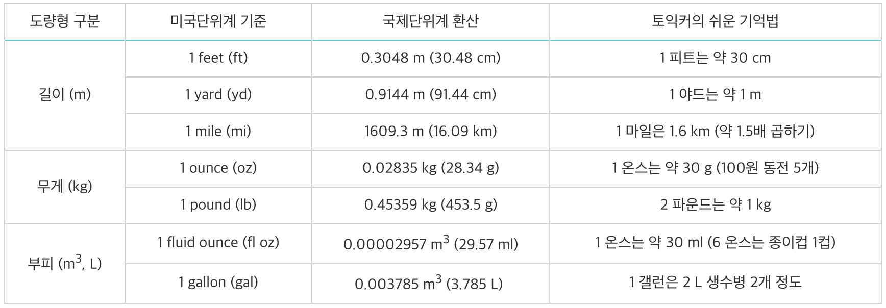 이해가 조금 쉽게 되셨나요? 이제 영미권 영화나 드라마를 시청할 때나 외국인과 대화할 때, 혼자서 '1마일이 몇 km 더라...' 검색하지 않고 바로 알아듣기! <토익스토리>가 자주 등장하는 미국단위계의 단위 변환과 쉬운 기억법을 정리해 드렸으니 꼭 활용해 보세요! :)