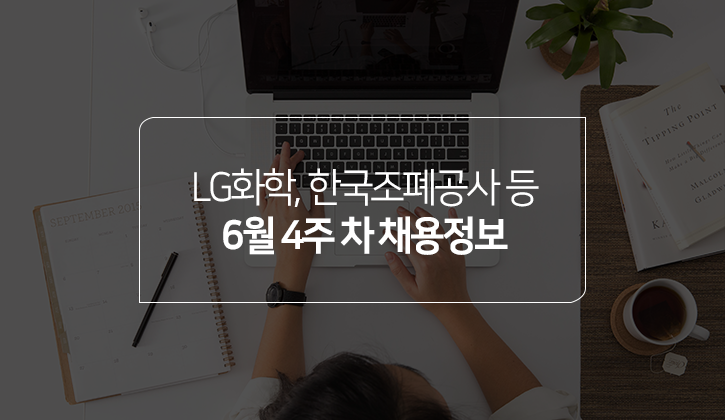 <토익스토리>가 전하는 위클리 채용정보, '6월 4주 차' 채용안내입니다. LG화학, 한국종합기술, 한국조폐공사에서 인턴 및 신입사원을 모집합니다. 각 채용의 모집 마감일과 토익, 토익스피킹 성적 기준을 알아보도록 하겠습니다.