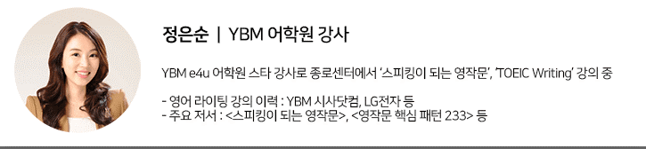 TOEIC의 듣기와 읽기는 상황, 지문 등의 자료가 제시되면 그에 맞는 답을 찾는 방법으로 시험에 응시하는데 반해, TOEIC Speaking과 TOEIC Writing의 말하기와 쓰기의 경우에는 질문에 대해 개인의 의견을 명확하게 전달해야 합니다. 그중 말하기는 목소리, 표정, 눈치 등 비언어적인 표현으로 상대방을 이해시킬 수 있지만 쓰기는 보다 정확한 문법과 어휘가 꼭 필요합니다.