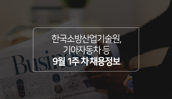 지금까지 건강보험심사평가원, 한국소방산업기술원, 기아자동차의 채용 소식을 전해드렸습니다. 각 채용 공고를 꼼꼼히 확인하시고 준비하셔서 원하시는 결과를 얻으시길 바랍니다. 모두에게 좋은 소식이 있길 기원하며 9월 2주차에도 알찬 채용 정보를 준비해 전해드리겠습니다!