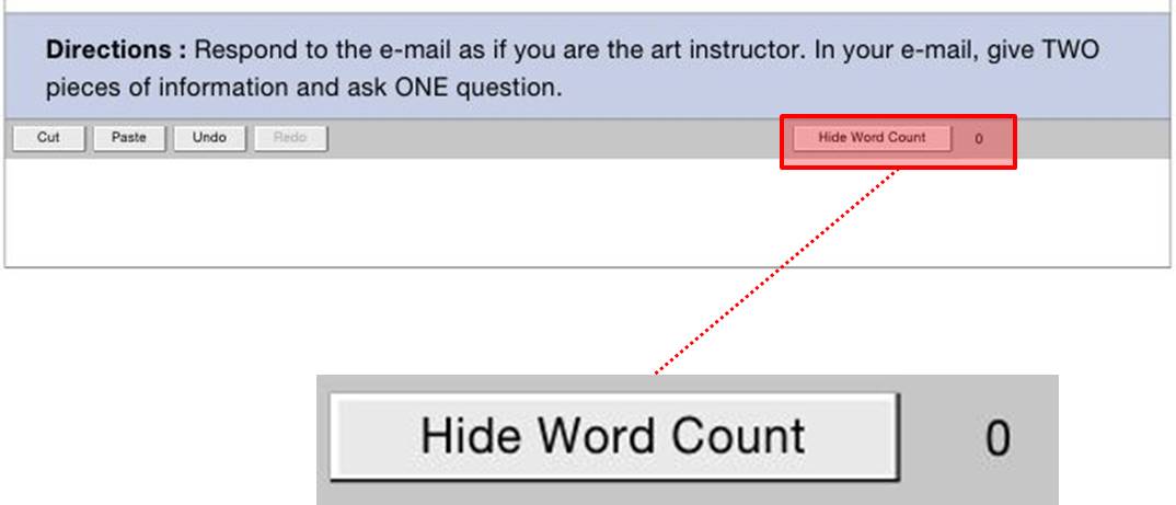 Question 8은 답변 시 300단어 이상을 사용해 답안을 작성해야 합니다. 이에 충족되지 못하면 좋은 점수를 받을 수 없겠죠? 단어 수를 체크하지 않고 시험을 종료하는 경우도 있는데 수험자가 주의해야할 부분입니다. 간혹 수험자가 본인이 몇 단어를 작성했는지, 어떻게 알 수 있는지 문의를 하는 경우가 있는데요. 화면 우측 상단의 'Hide word count' 버튼 옆에는 작성한 단어 수가 보여집니다. 시험 프로그램에 작성한 단어 수를 확인하거나 감출 수 있는 기능인 'Hide word count' 버튼이 있으니 시험에 응시할 때 이 버튼을 활용해 유효 단어 수를 꼭 체크하시기 바랍니다.