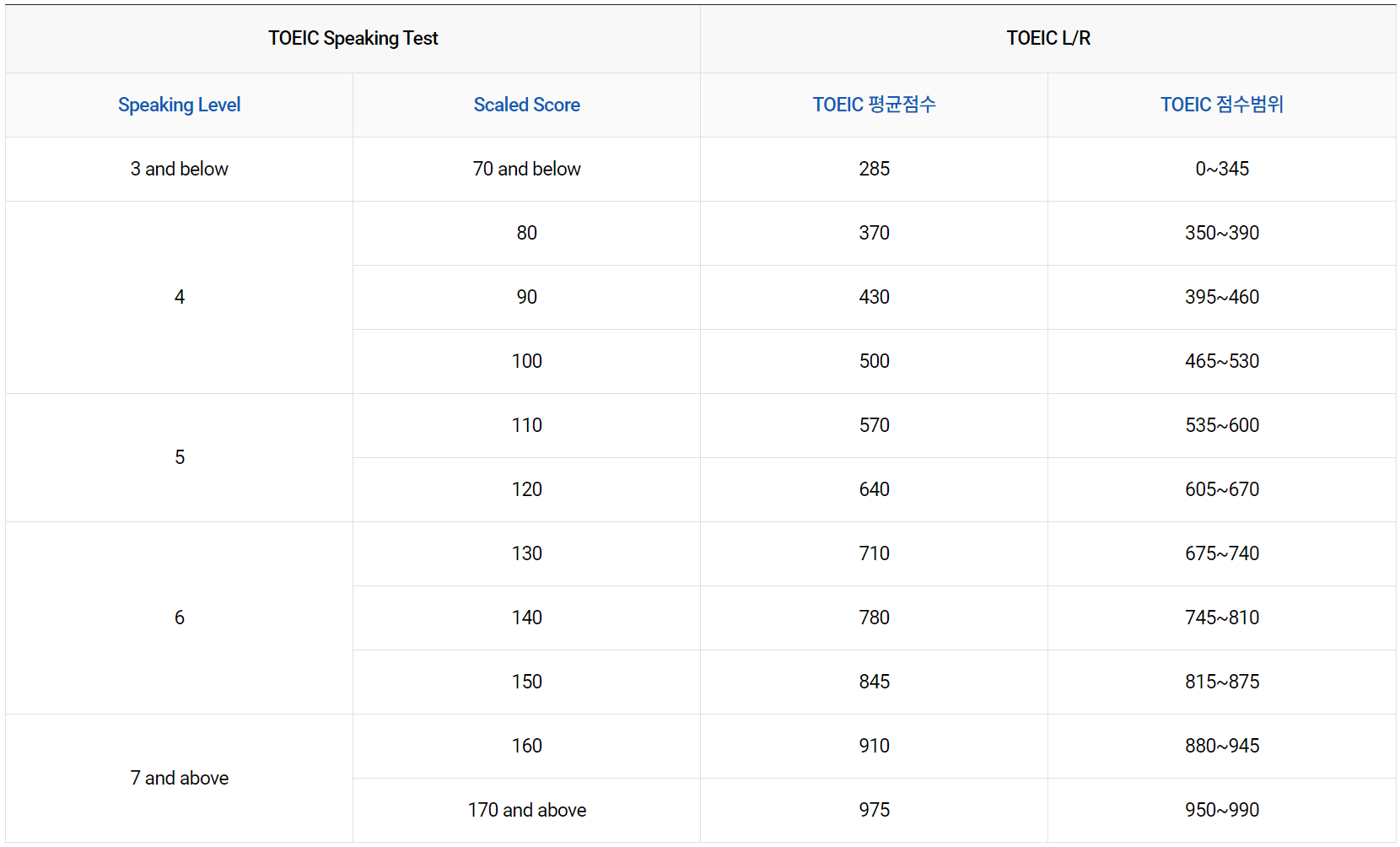 TOEIC® / TOEIC® Speaking Test 상관관계 자세히 보기