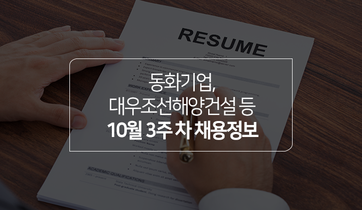 <토익스토리>가 전하는 위클리 채용정보, '10월 3주차' 채용안내입니다. 동화기업, 대우조선해양건설, LG화학에서 신입사원을 각각 모집합니다. 각 채용의 모집 마감일과 토익, 토익스피킹 성적 기준을 알아보겠습니다.