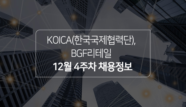 <토익스토리>가 12월 4주 차 BGF리테일, KOICA 채용 정보를 안내해 드립니다. 모집 마감일과 토익, 토익스피킹 성적 기준을 확인해 보세요!