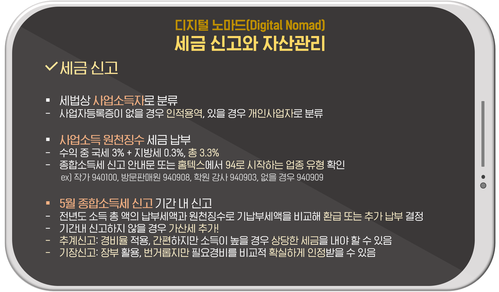 회사를 다니는 직장인이라면 매년 12월 꼼꼼한 연말정산을 통해 13월의 월급을 받을 수 있는 시즌이 있습니다. 회사 급여 외에 발생한 수익, 즉 디지털 노마드로 얻은 부수입에 대한 세금 신고는 어떻게 해야 할까요? 또 부수익으로 생긴 자산은 어떻게 관리하는 게 좋을까요?