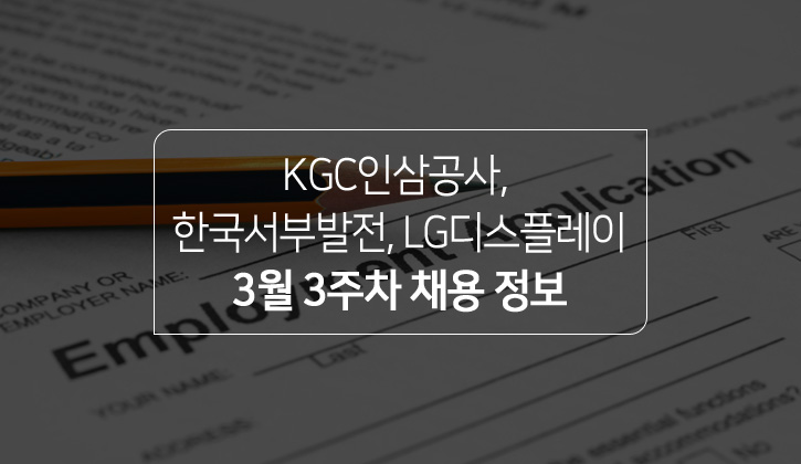 KGC인삼공사, 한국서부발전, LG디스플레이 채용정보를 전해드렸습니다. 채용 공고를 꼼꼼히 확인하고 미리 준비하셔서 원하시는 결과를 얻으시길 바랍니다!
