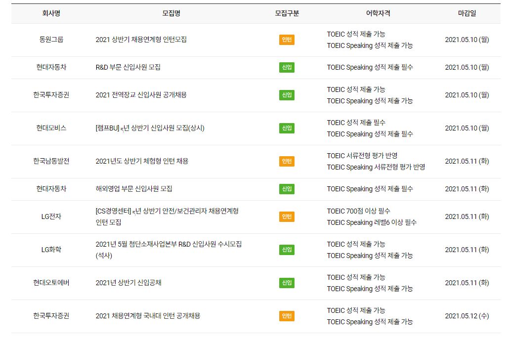 5월 TOEIC Speaking 정기시험 일정 확인하셨나요? 국내 대기업 및 공공기관 취업을 준비하고 있다면 TOEIC Speaking 5월 평일 추가 시험 기회를 활용해 보세요! 원하는 성적을 취득해 취업에 성공하시기 바랍니다. :D