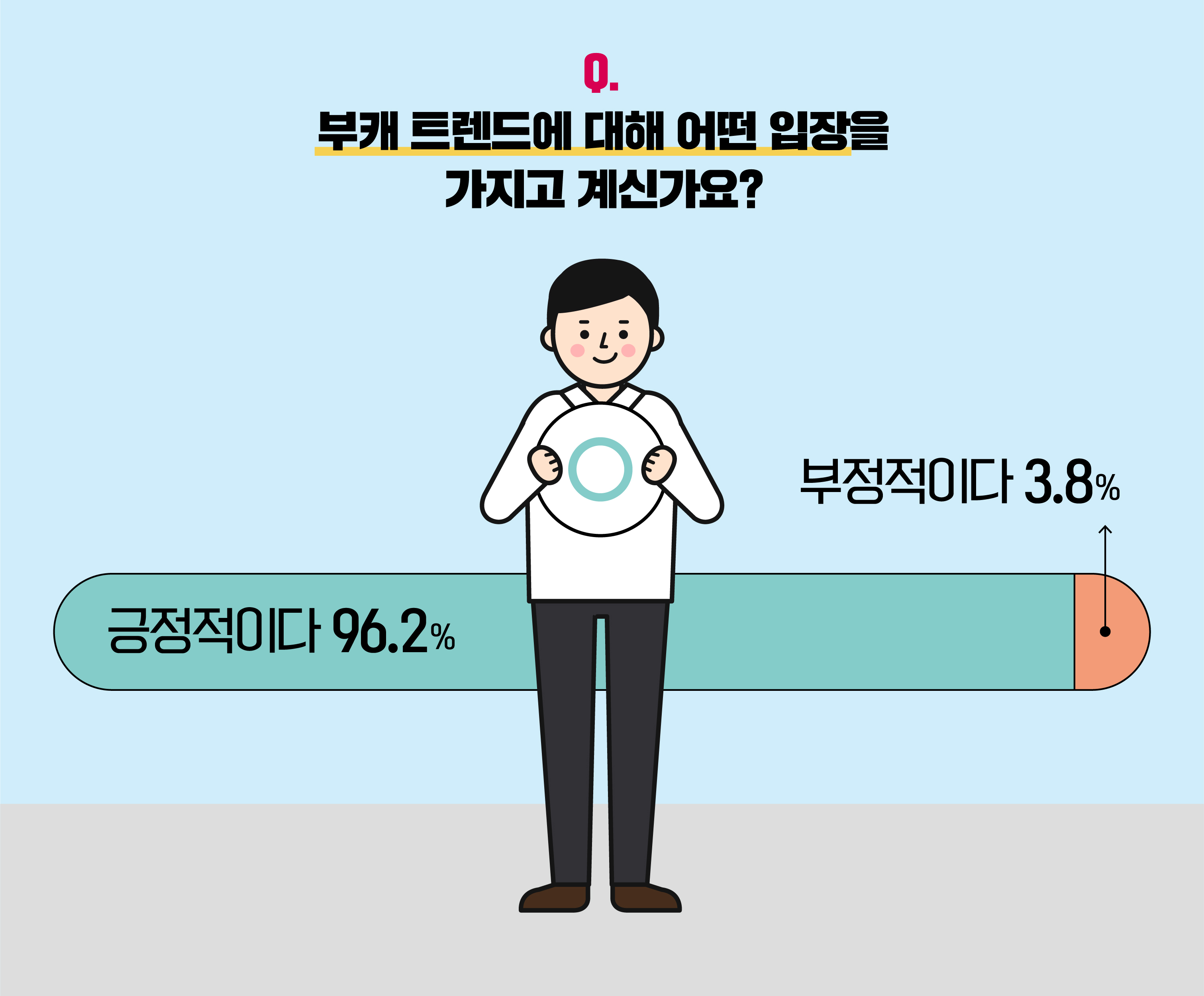 우선, 부캐 트렌드에 대한 인지도 및 인식 조사를 진행했는데요. ‘잘 알고 있다(65.9%)’와 ‘들어는 봤다(26.8%)’가 전체의 92% 이상을 차지하며 전반적인 부캐의 인기를 입증했습니다. 아울러, 부캐가 유행으로 자리 잡은 현상에 관해 무려 96.2%가 ‘긍정적이다’는 의견을 표한 점도 눈에 띄네요.