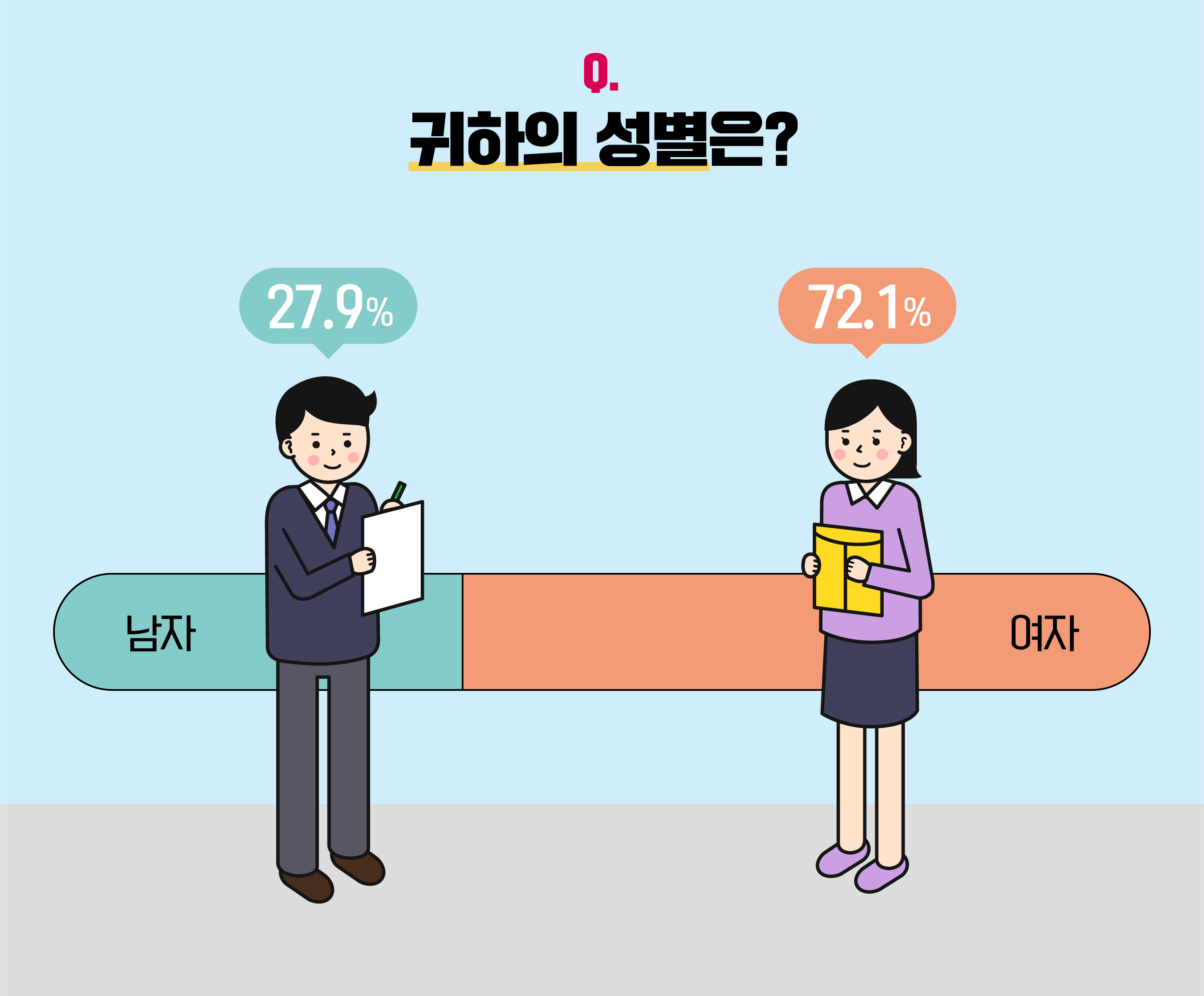 설문 참여자의 성비는 '남성'이 27.9%, '여성'이 72.1%였습니다.