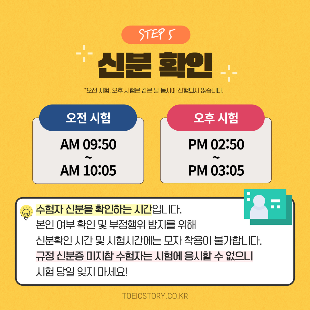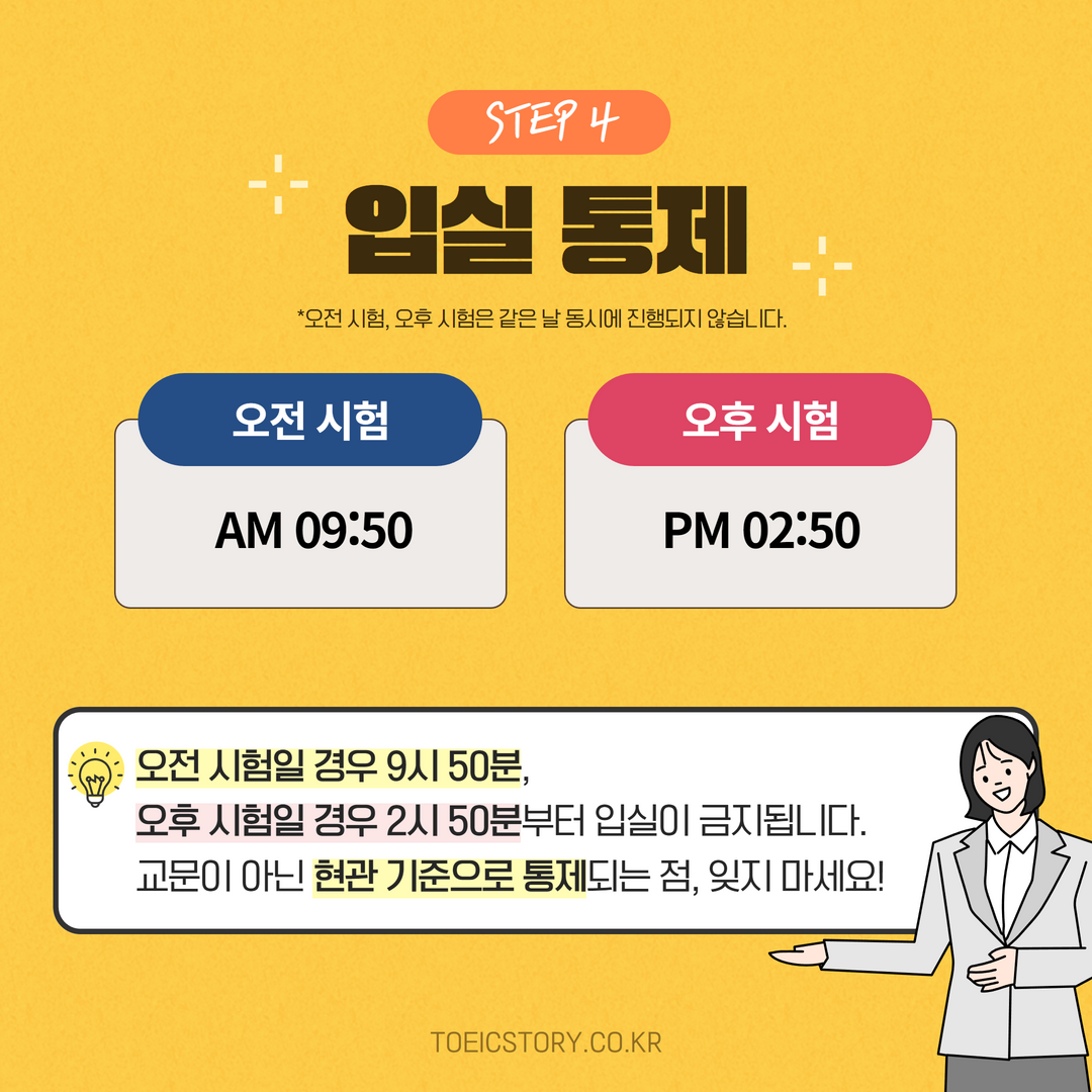 토익 오전 시험은 9시 50분, 오후 시험은 2시 50분부터 입실이 금지됩니다.
