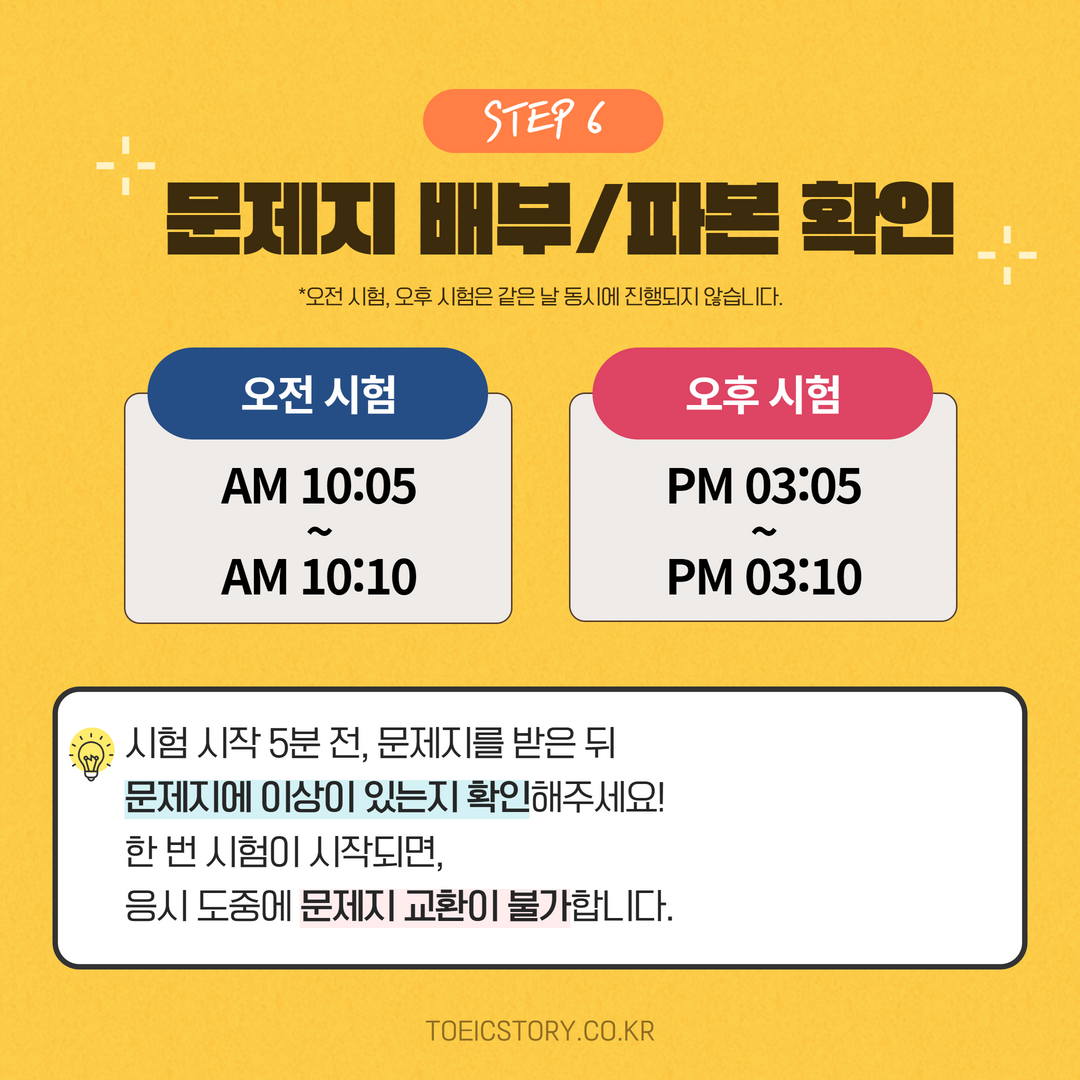 듣기 평가(L/C) 시작 5분 전에 토익 문제지 배부가 시작됩니다. 한 번 시험이 시작되면, 규정상 응시 도중에 문제지 교환이 불가한데요.