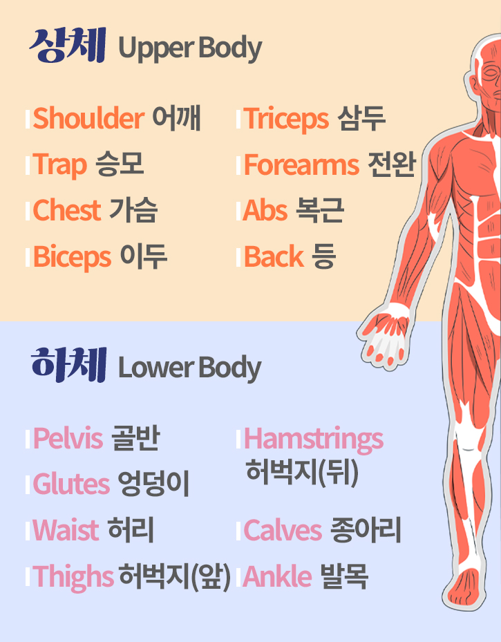 신체 부위별 근육 명칭(영어) 운동할 때 알아두면 좋아요 – 탑바디