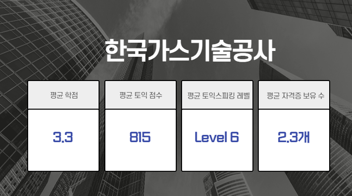| 한국가스기술공사 | 2021년 상반기 직원 채용 | 신입/경력 | TOEIC 810점 이상 TOEIC Speaking 140점 이상 |
