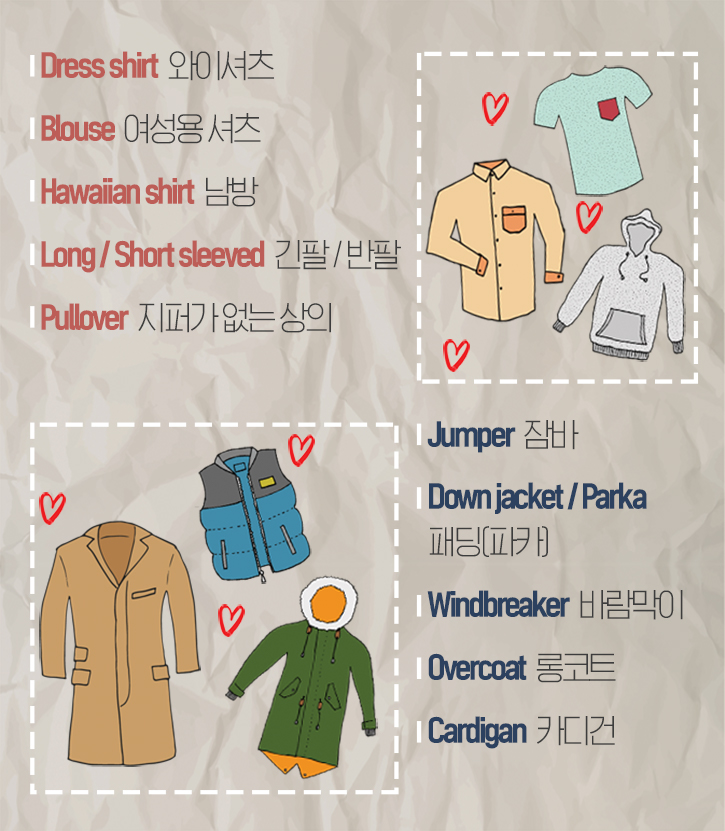 첫 눈에 들어오는 옷, 상의 관련 영어 표현