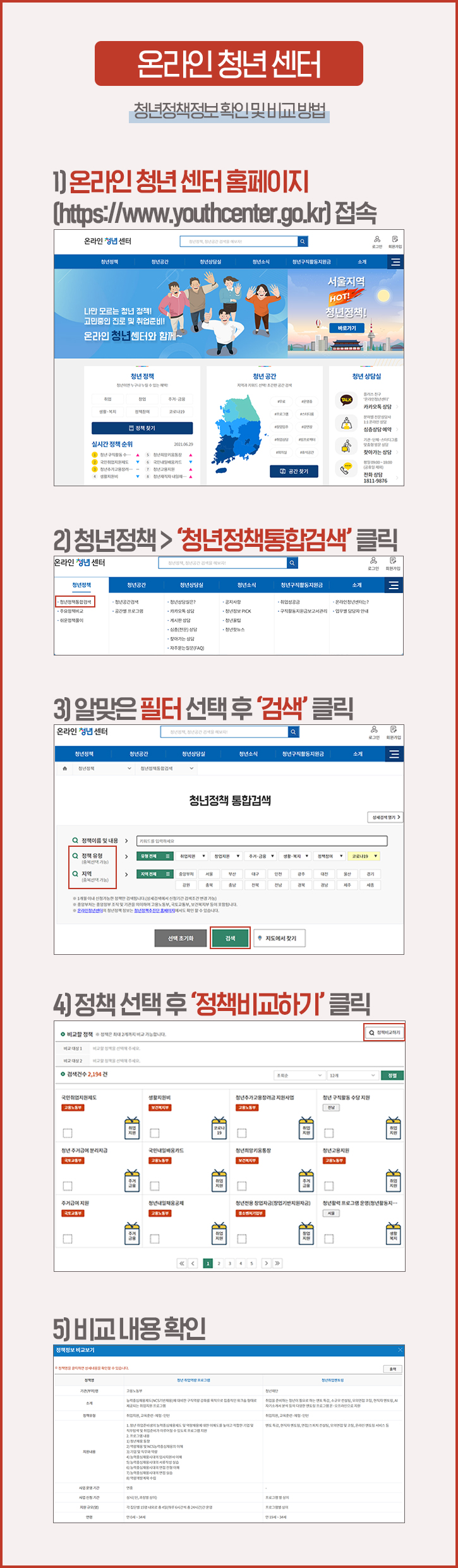 온라인 청년 센터를 통한 청년 정책 사업 확인 및 비교, 정말 간편하죠? 알려드린 방법을 잘 활용하여 본인에게 알맞은 정책을 찾을 수 있길 바랍니다 :)