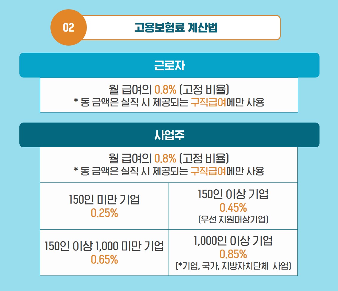 Q. 고용보험료는 근로자와 사업주가 같이 부담하는 걸로 알고 있는데, 계산법이 어떻게 되나요?