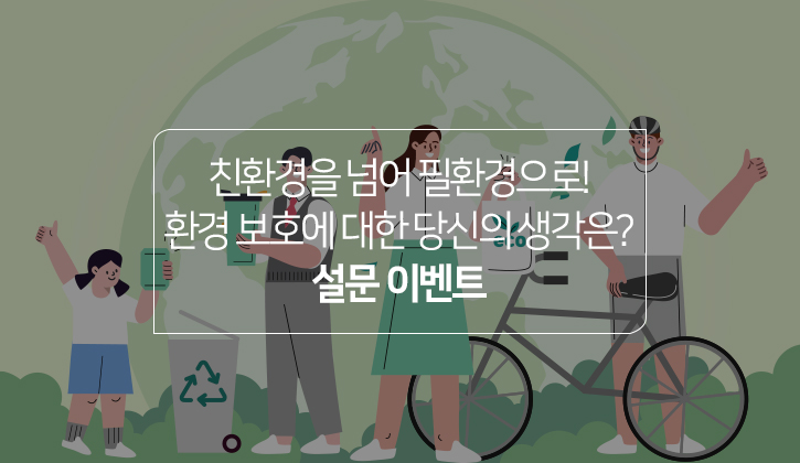 | [당첨자 발표] 친환경을 넘어, 이제는 필환경 시대! 환경 보호에 대한 당신의 생각은? (0) | 2021.11.10 |