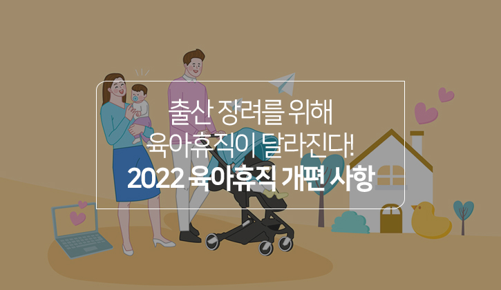 지난 2020년 기준 대한민국의 출산율은 0.84명으로 OECD 가입국 중 유일하게 1명 미만을 기록했습니다. 출산율 감소는 사회, 경제, 문화 등 각 분야의 복잡한 영향을 받아 일어나게 됐는데요. 그중에서도 특히 생계가 걸린 직장 문제가 결혼 및 출산에 걸림돌로 작용한다고 할 수 있습니다. 아이를 낳은 후 가정에서 양육하는 시간이 필요한데, 회사 생활을 내팽개치고 집에서 시간을 보낼 수 없기 때문이죠. 따라서 최근 정부는 4차 저출산 고령화 기본계획에 따라 육아휴직 지원제도를 개편했습니다. 일터와 가정을 모두 챙기기 위한 정책! 과연 어떻게 달라졌는지 함께 확인해 보시죠 :)