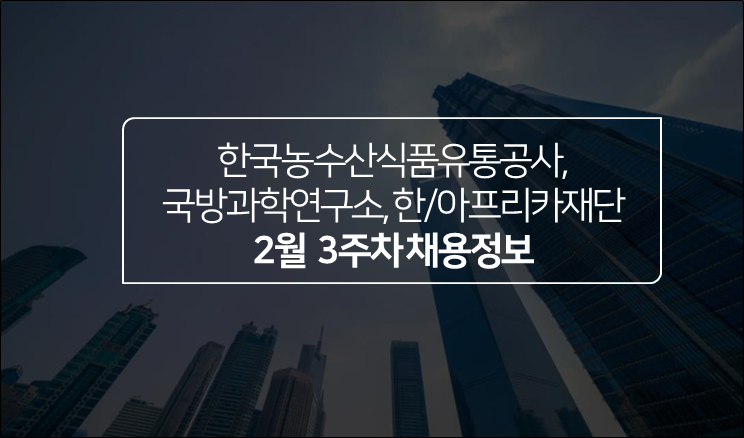 지금까지 국방과학연구소, 한국농수산식품유통공사, 한/아프리카 재단 채용 공고를 전해드렸습니다. 꼼꼼히 확인하고 미리 준비하셔서 좋은 결과 얻으시길 바랍니다