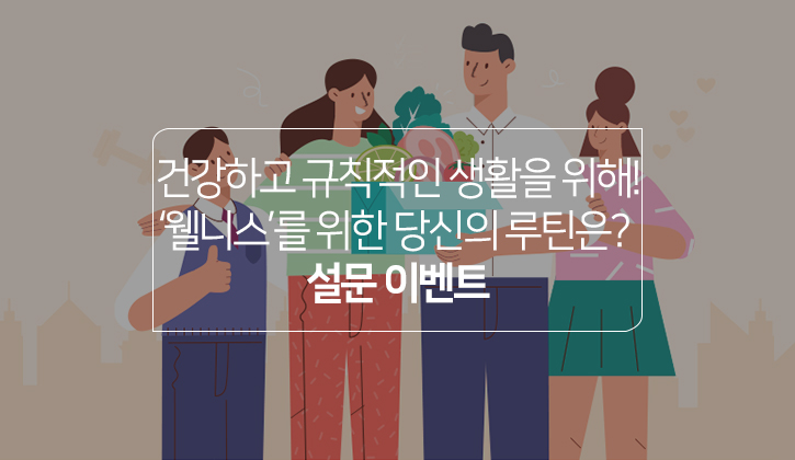 | [당첨자 발표] 건강하고 규칙적인 생활을 위해 이것만은 꼭! ‘웰니스’를 위한 여러분만의 루틴은? (0) | 2022.05.20 |