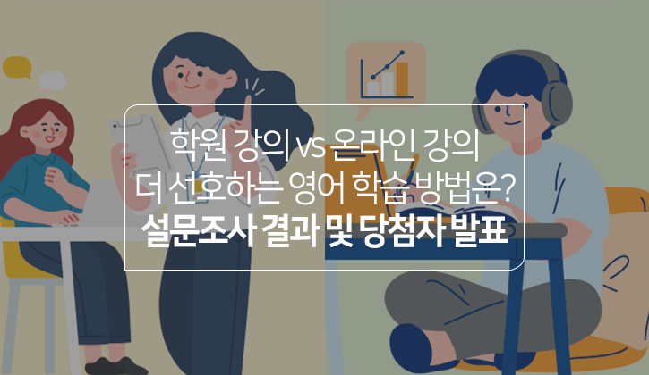 | '말하기 VS 쓰기', 영어 소통에 더 중요한 역량은? 설문조사 결과 및 당첨자 발표 (0) | 2022.02.22 |