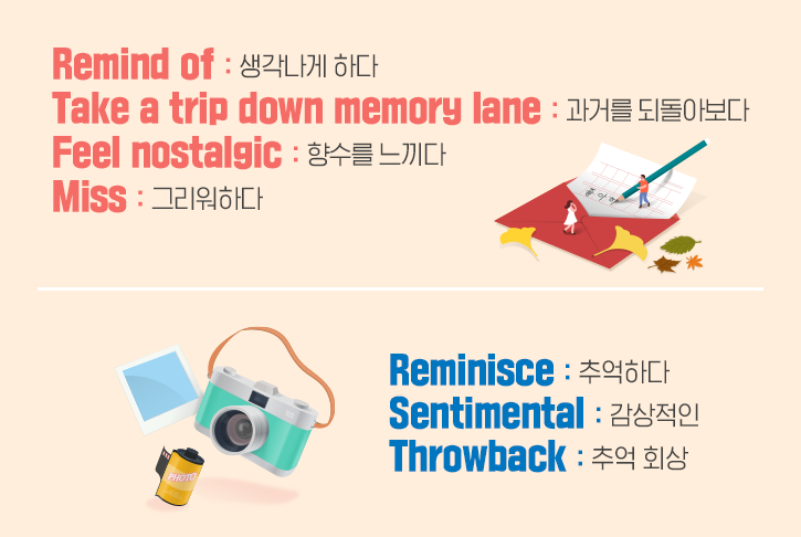 추억팔이 영어로? / 추억이 돋는다 영어? / Bring back memory(memories) / Nostalgic / Throwback – 리부다빛