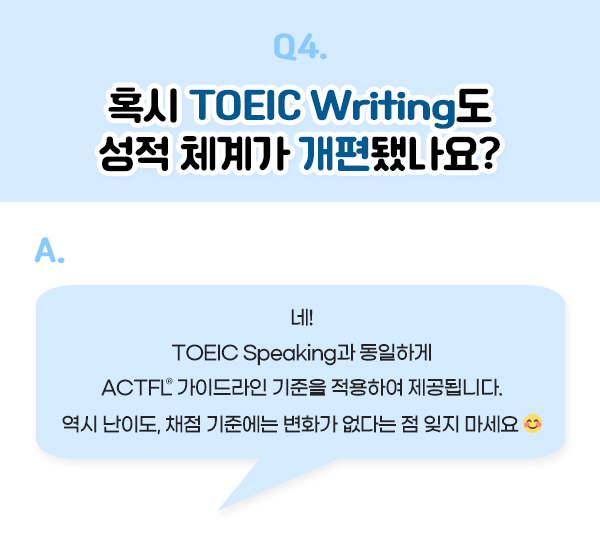 Q. 혹시 토익라이팅 성적 체계도 개편됐나요?
