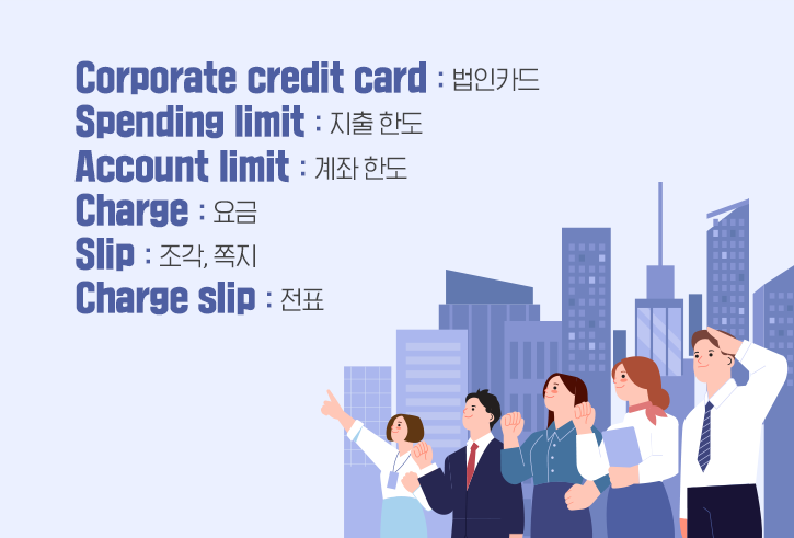 회사와 관련된 일로 돈을 써야 할 일이 있다면 어떻게 할까요? 먼저 사비로 결제한 뒤 지출 용도와 내역을 서류화해서 회사에 제출해 돌려받는 방법과 회사에서 지급해준 카드를 사용해서 결제하는 방법이 있죠. 이렇게 공금 목적으로 돈을 사용할 수 있도록 기업에서 지급해주는 카드를 ‘Corporate credit card(법인 카드)’라고 합니다. ‘Corporate(기업의)’ 대상으로 발급되는 카드라고 해서 ‘Corporate credit card’라는 명칭을 사용한답니다.