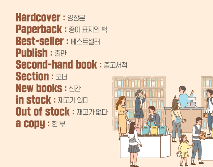 서점에 가면 다양한 형태의 책을 만나볼 수 있는데요. 크게는 단단하고 고급스러워 선물이나 소장용으로 인기가 많은 ‘Hardcover(양장본)’와 저렴하고 가벼워 휴대하고 다니면서 읽기 좋은 ‘Paperback(종이 표지 책, 문고본)’으로 나뉩니다. 아주 인기가 많은 책의 경우 애독자들이 ‘Hardcover’와 ‘Paperback’ 두 종류로 ‘Publish(출판)’된 책을 모두 구입하길 원하기 때문에 ‘Best-seller(베스트셀러)’ 란에 같은 책이 두 권 진열된 것을 볼 수도 있답니다.