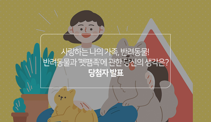 | [설문 이벤트] 사랑하는 나의 가족, 반려동물! 반려동물과 ‘펫팸족’에 관한 당신의 생각은? (0) | 2022.08.31 |
