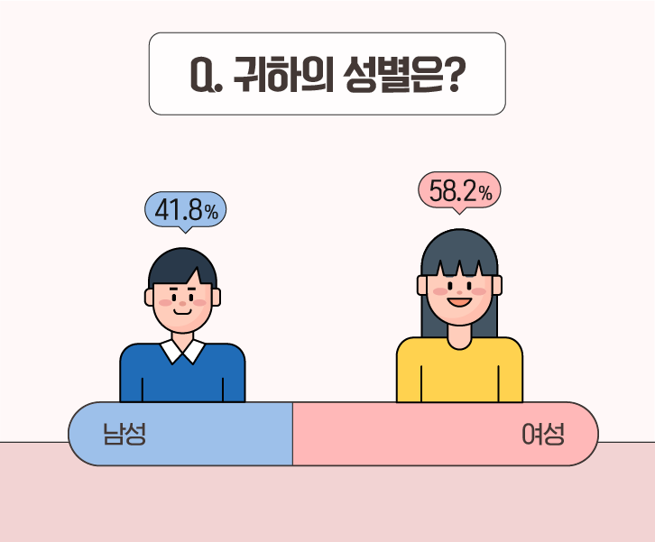 설문 참여자의 성비는 ‘남성’이 41.8%, ‘여성’이 58.2%였습니다.
