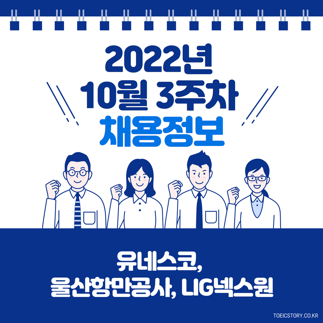 <토익스토리>가 유네스코, 울산항만공사, LIG넥스원 채용 정보를 안내해 드립니다. 모집 마감일과 토익, 토익스피킹 성적 기준을 확인해 보세요!