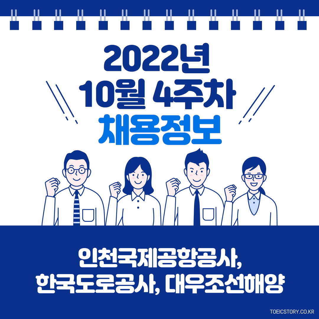 <토익스토리>가 인천국제공항공사, 한국도로공사, 대우조선해양 정보를 안내해 드립니다. 모집 마감일과 토익, 토익스피킹 성적 기준을 확인해 보세요!