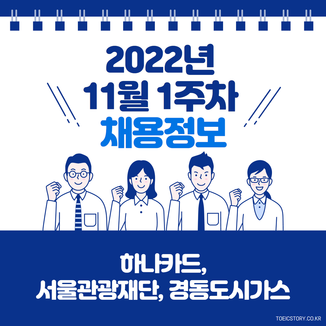 <토익스토리>가 하나카드, 서울관광재단, 경동도시가스 채용 정보를 안내해 드립니다. 모집 마감일과 토익, 토익스피킹 성적 기준을 확인해 보세요!