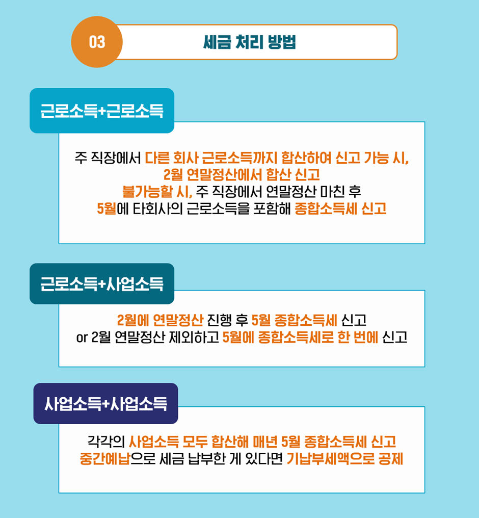 Q3. 현재 겸업을 하고 있는데 세금 처리는 어떻게 해야 하나요?
